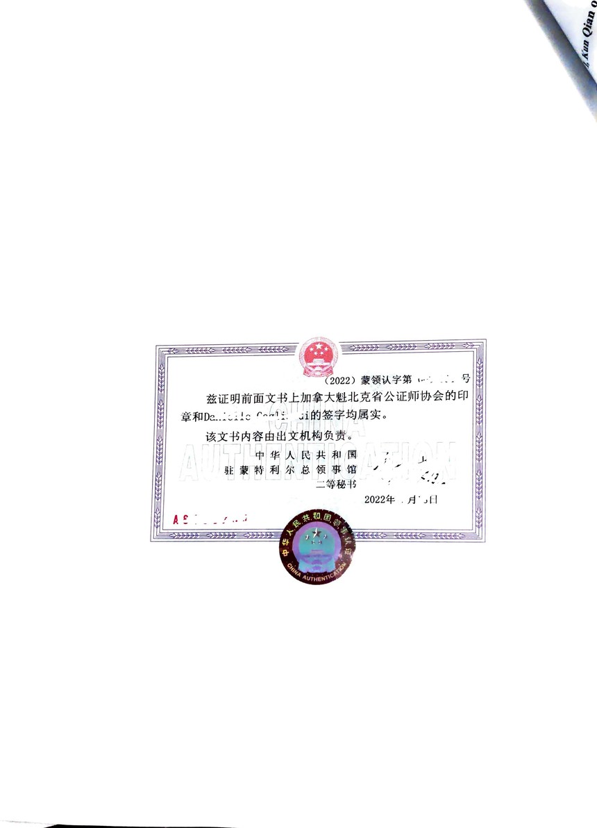 ——加拿大公证处、海牙认证代理机构。