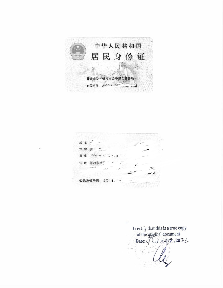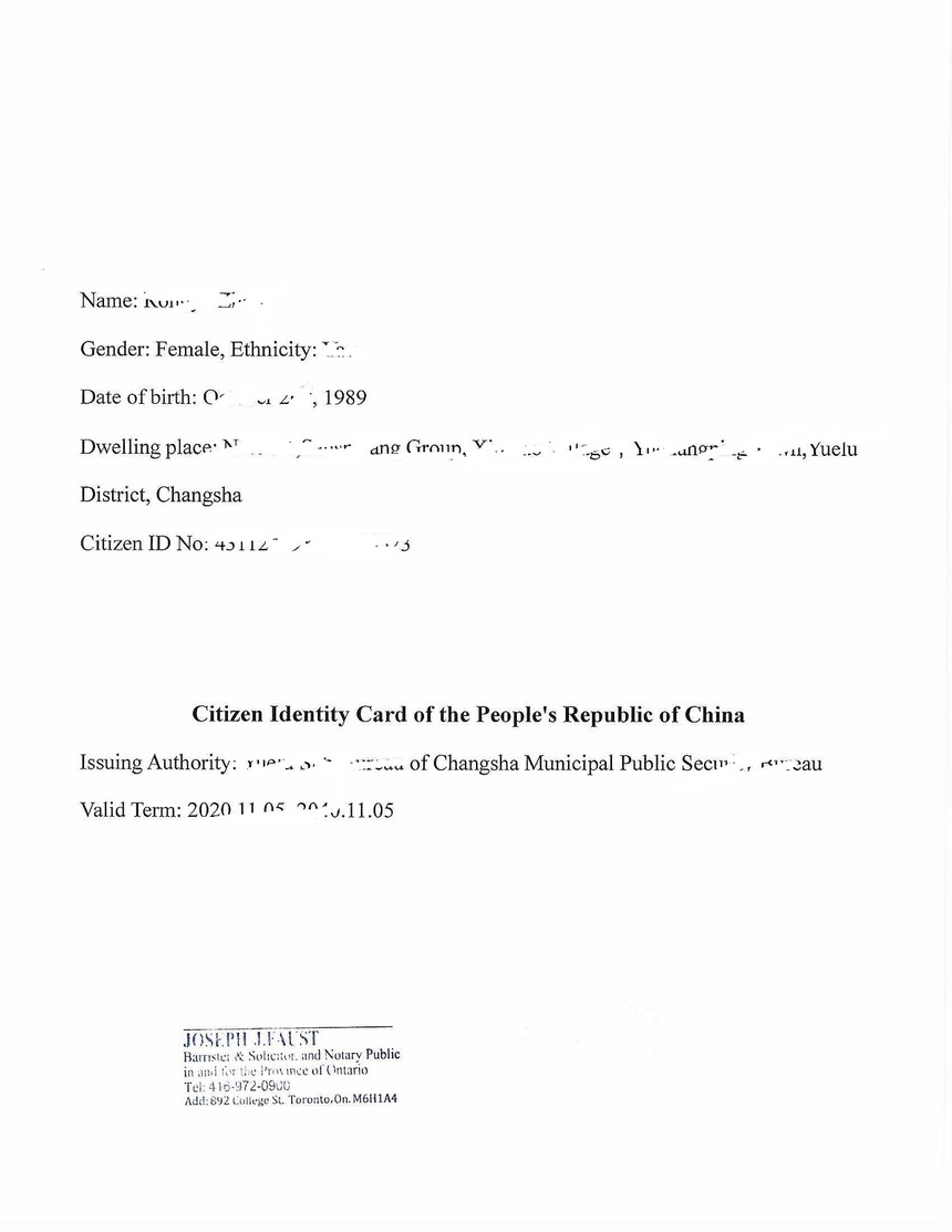 加拿大小学生留学文件公证:家长身份证翻译公证件.pdf