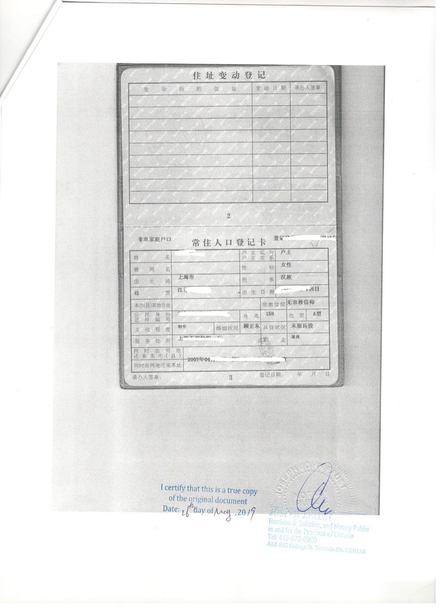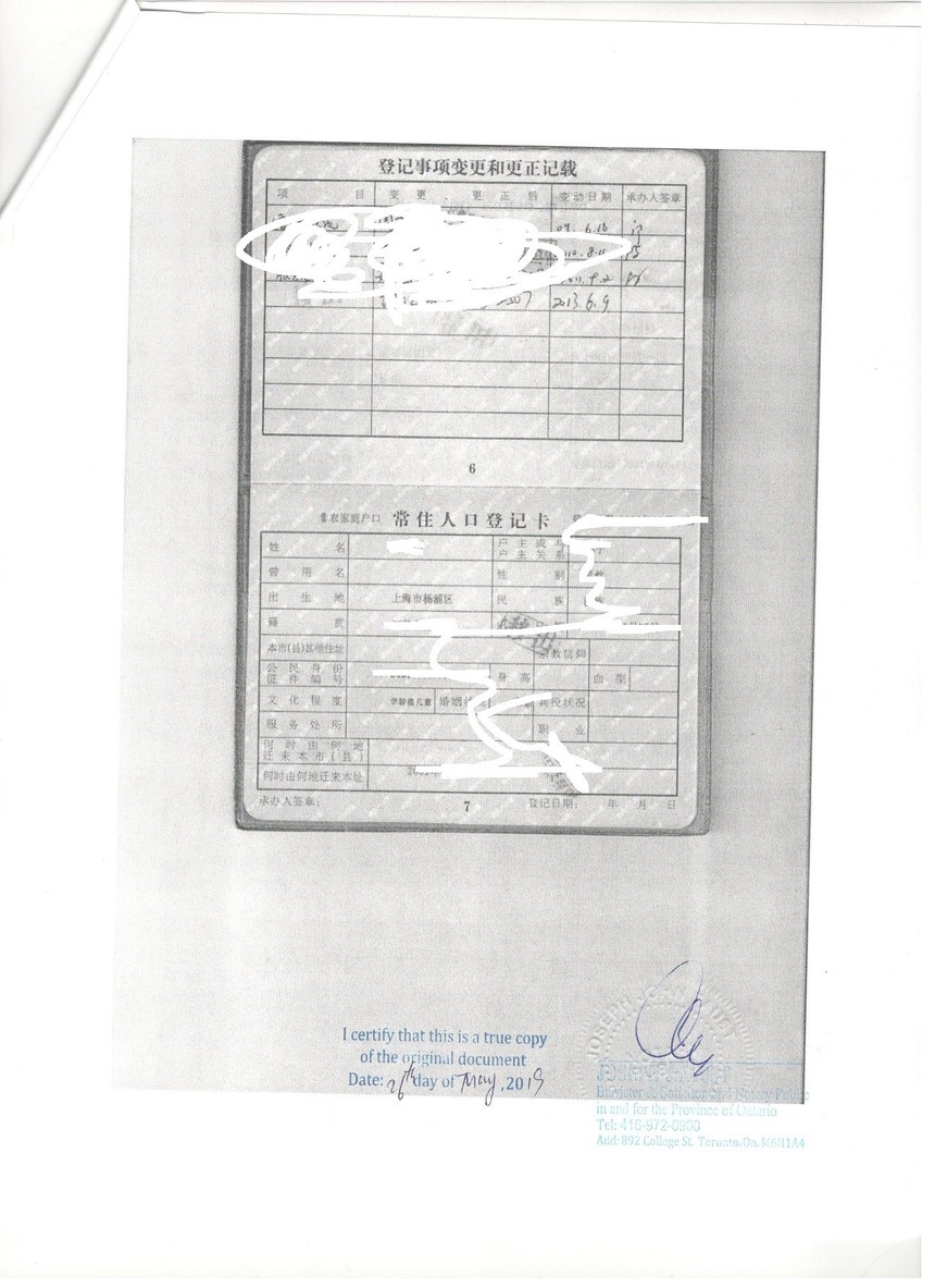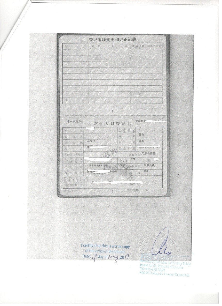 加拿大多伦多公证处公证认证样稿