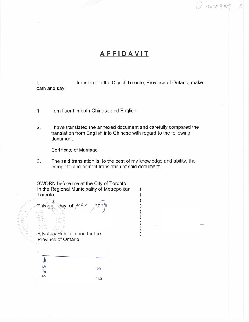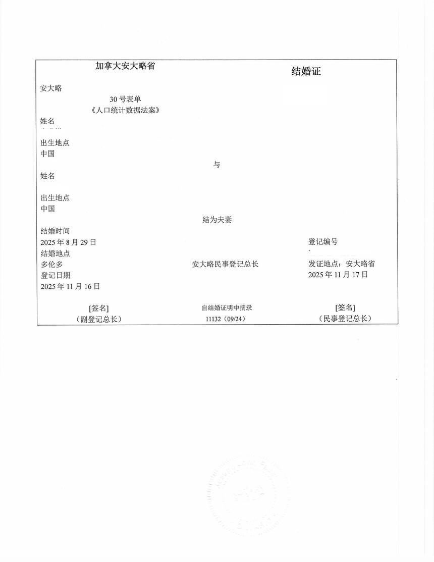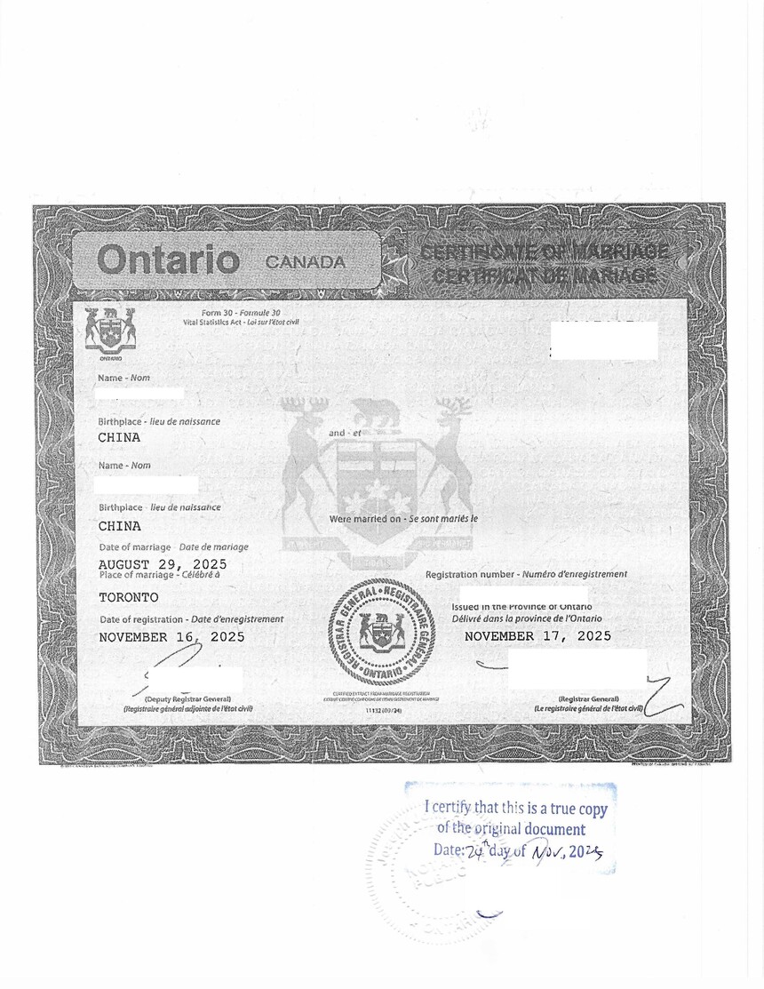 加拿大结婚证的中英文翻译