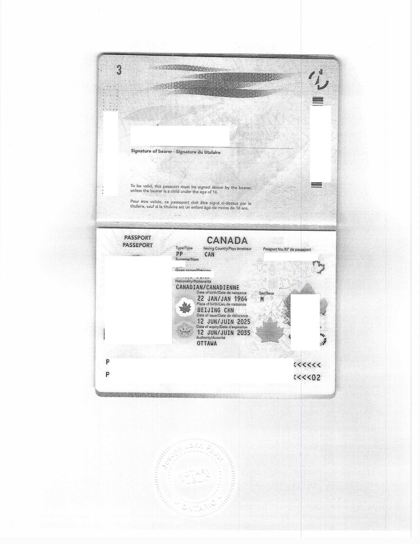 “本人现为加拿大公民,现持加拿大护照,护照姓名为 John Han(化名)。