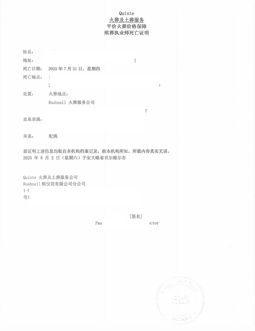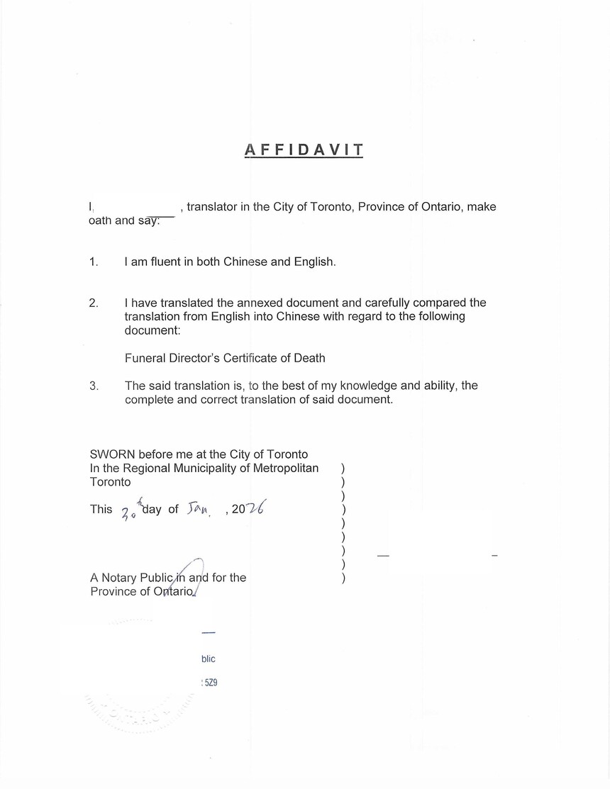 此后几年中,客户家庭陆续又有新的事务需要处理。随着家庭成员情况变化,又涉及到死亡证明的翻译、公证及认证。该类文件对格式、措辞及附件完整性要求严格,稍有不当就可能被退件。我们结合客户此前的历史档案,避免重复取证,协助其高效完成全部流程。