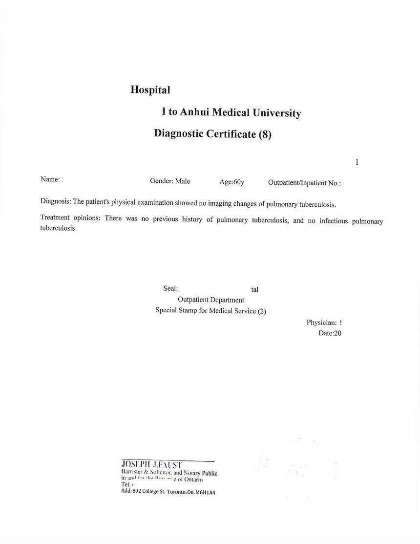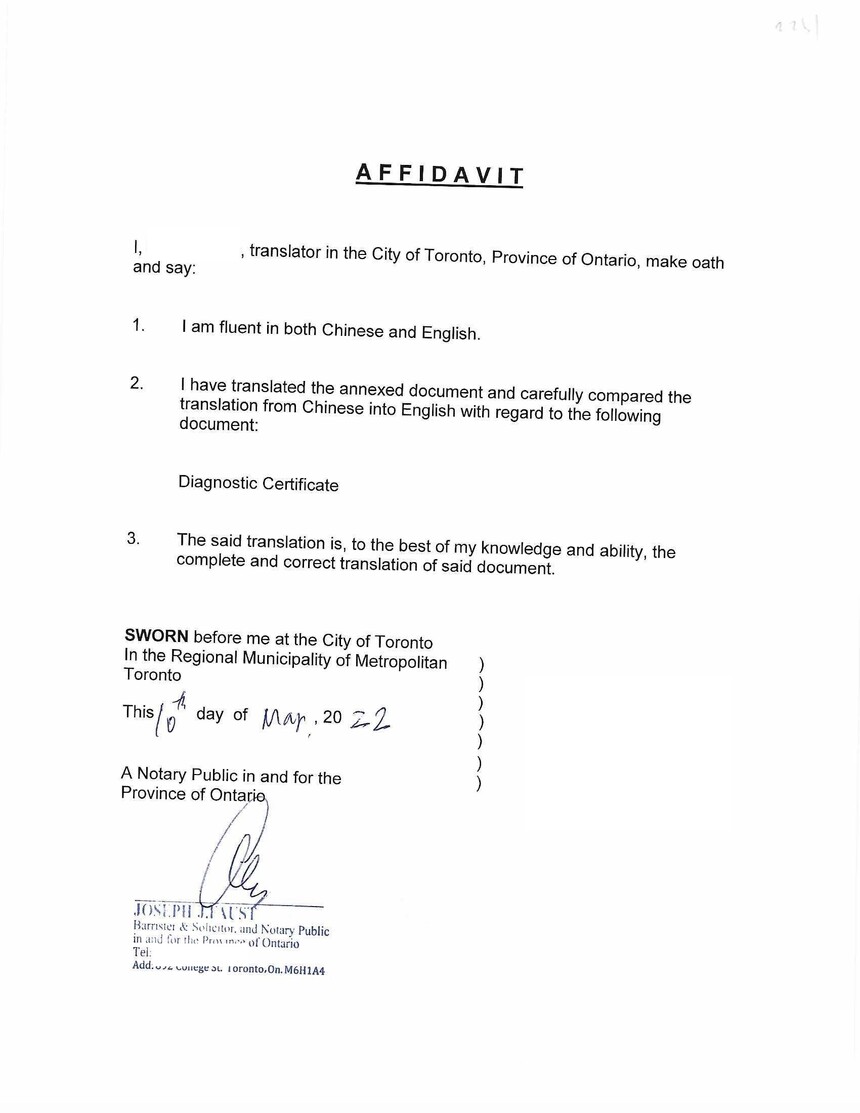 加拿大律师公证件 安徽医院诊断书翻译公证